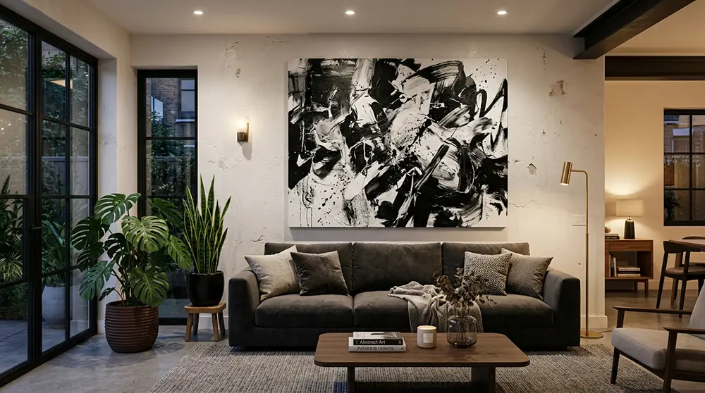Choisir sa toile est une chose. Savoir la placer et l’accompagner en est une autre. La déco noir et blanc réussie repose autant sur la sélection des œuvres que sur leur mise en scène dans l’espace.
