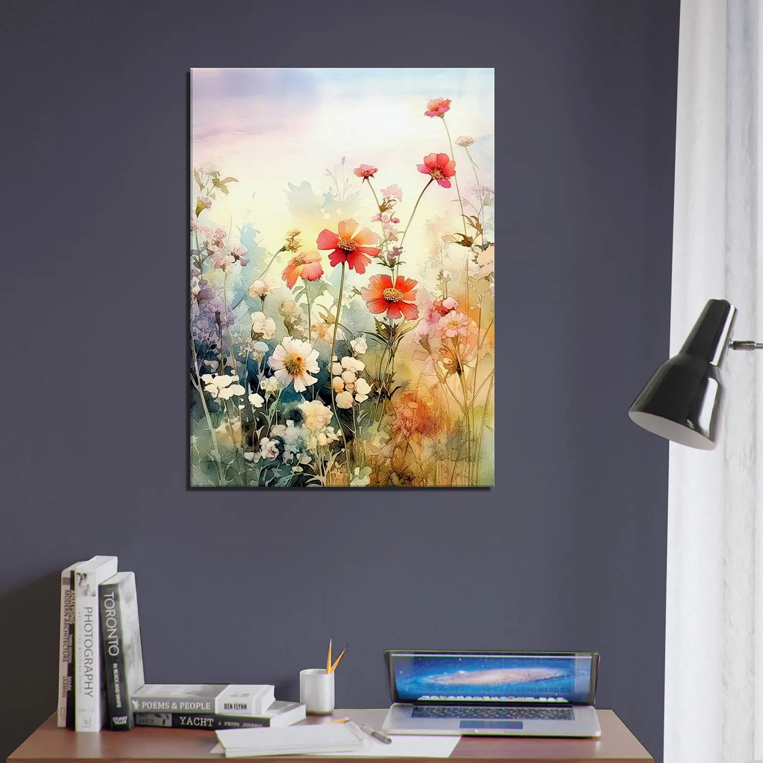 Découvrez la beauté simpliste et apaisante des fleurs sauvages des champs avec cette délicate aquarelle.
