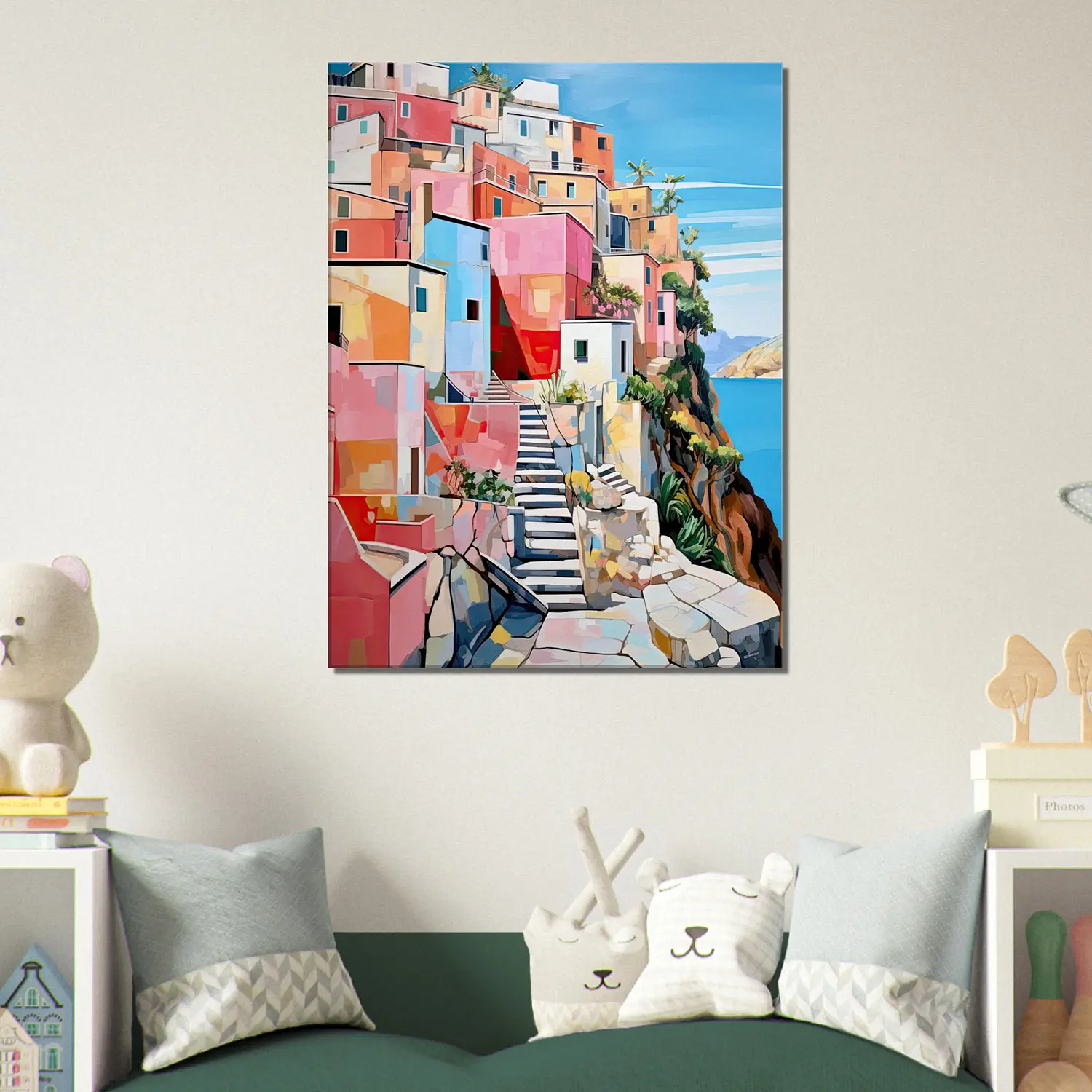 Impression sur toile : Éclats chromatiques d’un village italien côtier