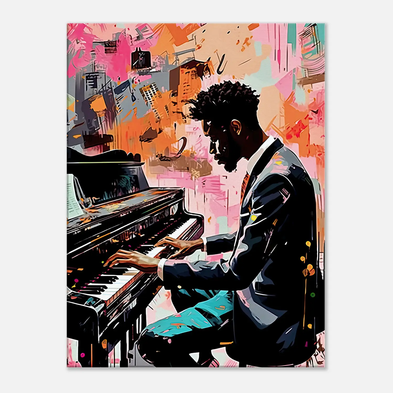 Impression sur toile : Harmonie en Couleur : Un Pianiste et Son Art