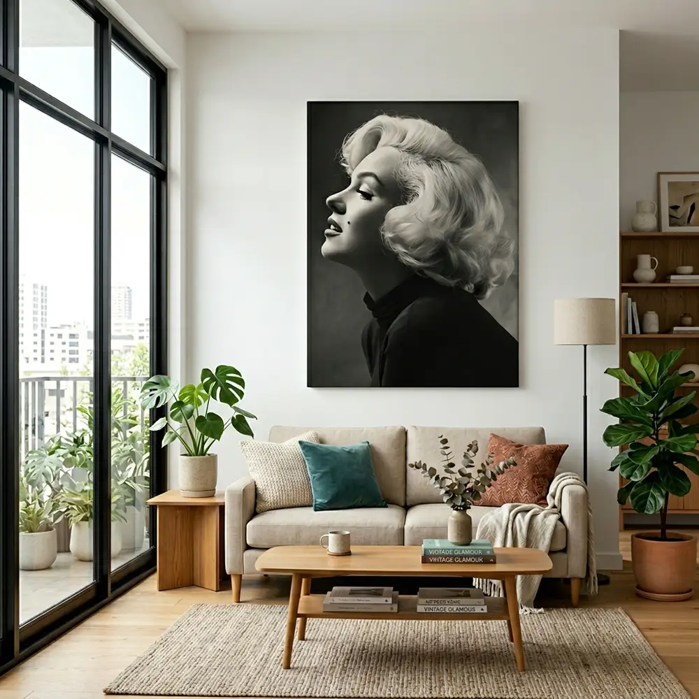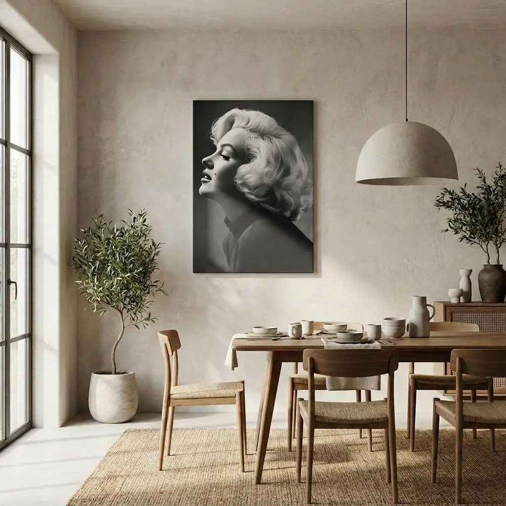 La palette noir et blanc de ce portrait lui offre une polyvalence décorative exceptionnelle. Il dialogue avec tous les styles d’intérieur : scandinave, industriel, bohème, contemporain ou classique.